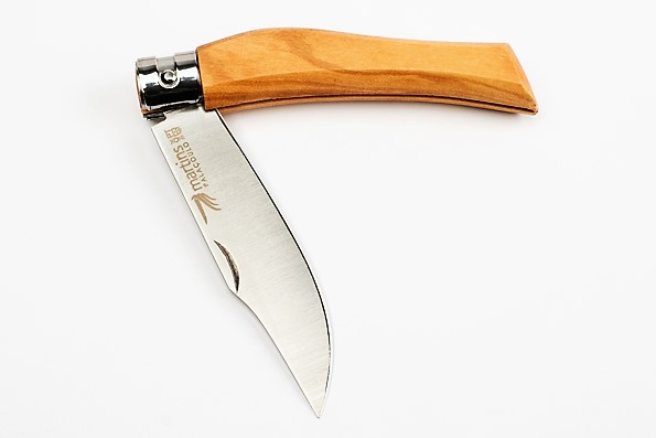 Navalha de uso intensivo com lâmina em aço inox [420 Mova] e punho em madeira de Oliveira . Dotada com sistema de bloqueio giratório de lâmina, Giroblock.